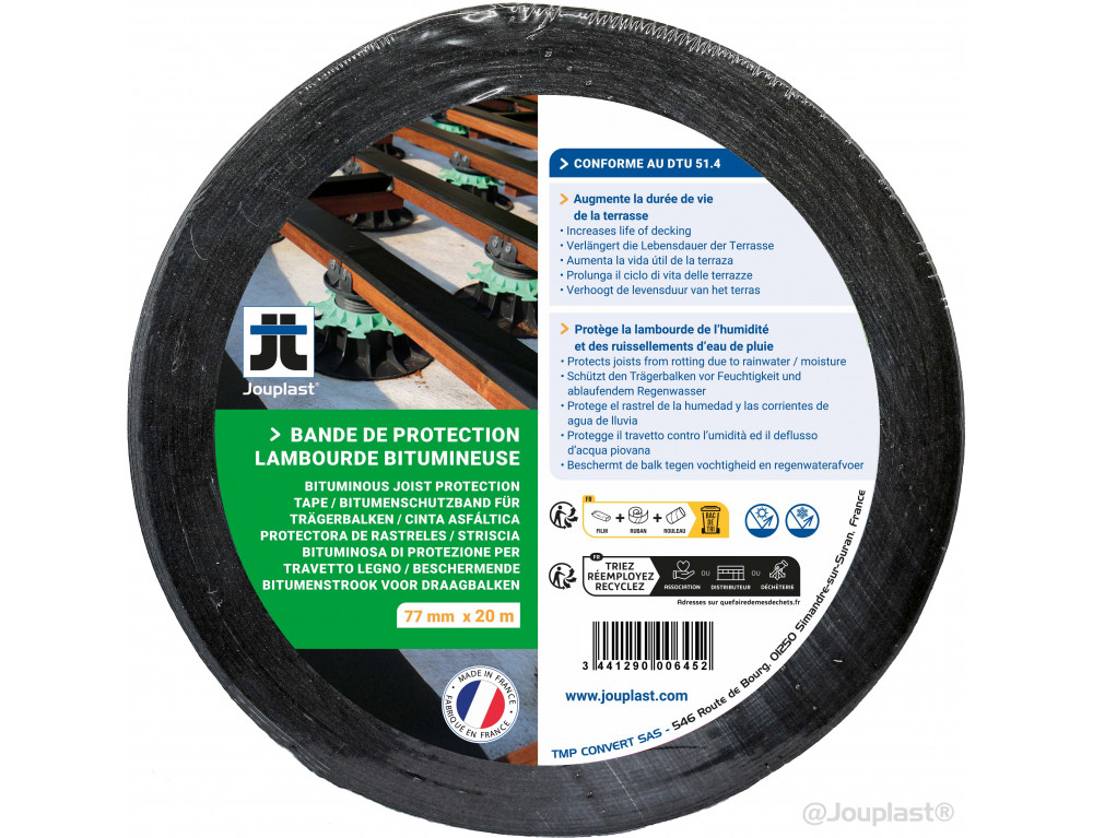 Protégez efficacement vos lambourdes avec cette bande bitumineuse de 77 mm x 20 m. Idéale pour éviter l'accumulation d'humidité et prolonger la durée de vie de vos structures en bois, elle est facile à poser et garantit une isolation optimale contre les intempéries. Parfaite pour vos projets de terrasses ou aménagements extérieurs.