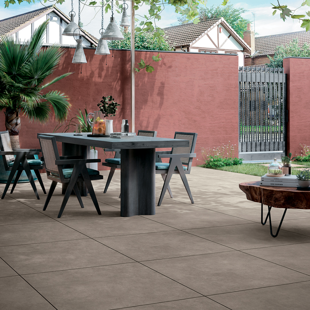 Le carrelage extérieur Glocal Chamois de Mirage est un grès cérame pleine masse qui allie l’esthétique du béton lissé à une résistance exceptionnelle. Conçu pour une pose sur plots, il assure sécurité (R11), résistance aux intempéries et entretien facile. Disponible en 60x60 cm (vendu par lot de 2), 60x120 cm, 80x80 cm, 90x90 cm et 120x120 cm, il s’adapte parfaitement aux terrasses modernes et minimalistes.