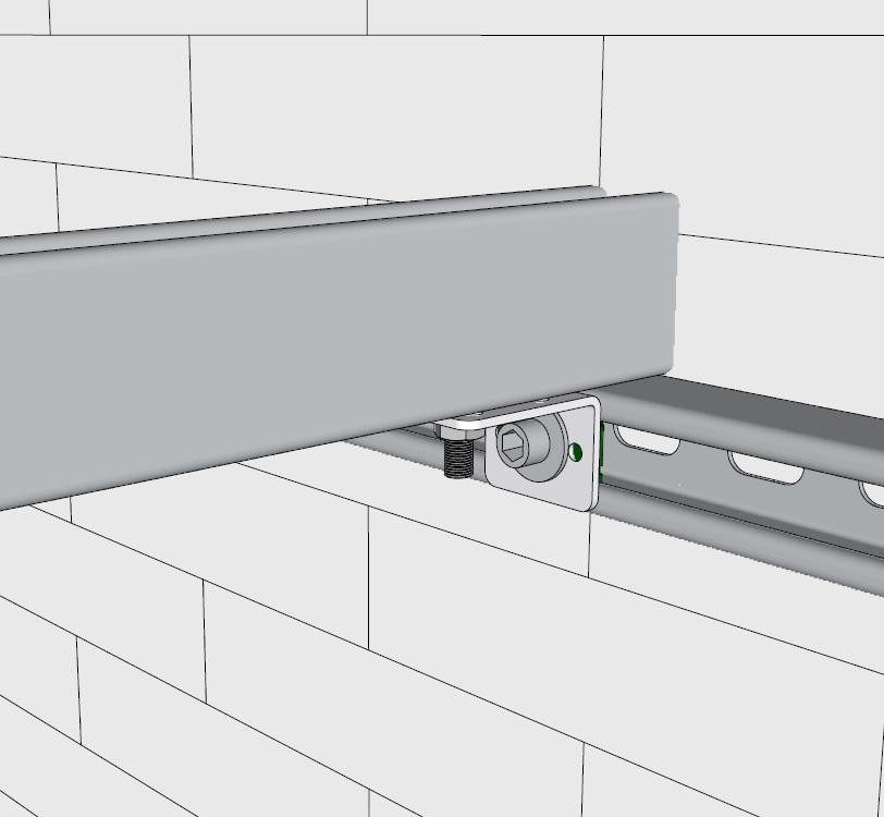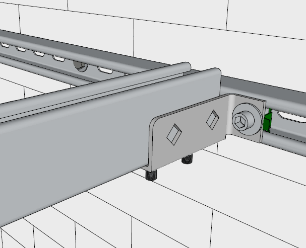 Boulon de fixation des Profilés C de la structure supérieure sur ceux de la structure inférieure. L’utilisation d’écrou coulissant permet de gagner beaucoup de temps et de régler simplement la position des différentes pièces de la structure. Grâce à leur empreinte Allen 8, tous les composants sont fixés par le dessus assurant un grand confort de travail.