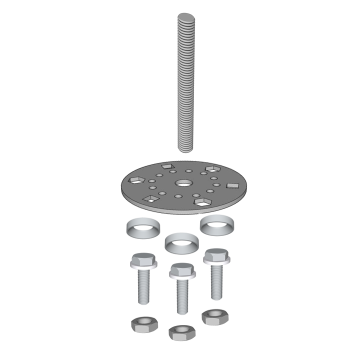 Connecteur pour poteau bois offrant une grande résistance aux forces latérales. Nécessite de forer (diamètre 14 mm) le poteau bois sur une profondeur de 20cm.